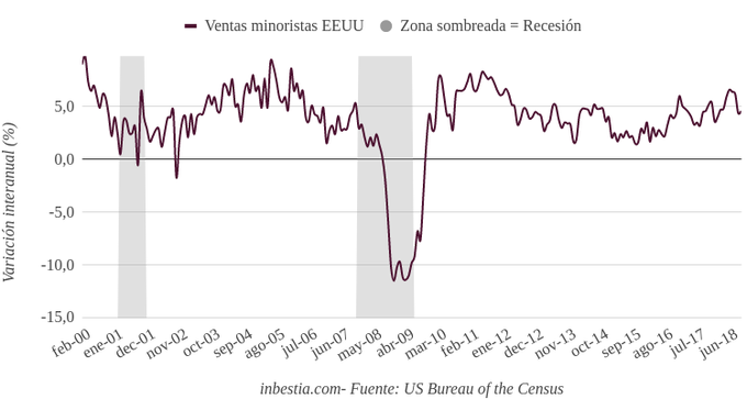 EEUU: Ventas minoristas +4,4% interanual en septiembre Según el Instituto Nacional de Estadística estadounidense (US Bureau Census), las ventas minoristas aumentaron un 0,5% en octubre respecto al mes anterior. En cuanto a su... 15 de noviembre, 2018