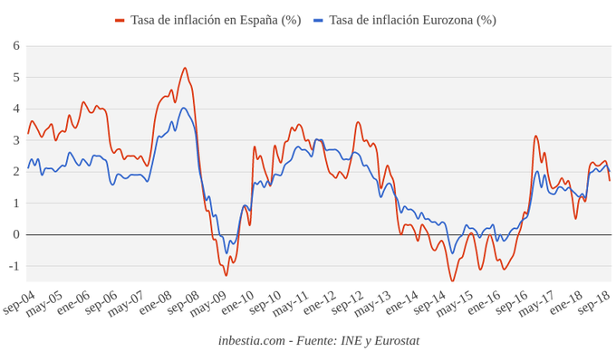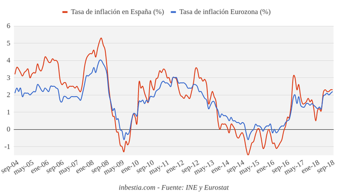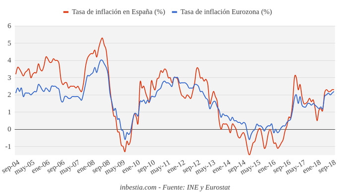España: Tasa de inflación 2,3% en octubre El Instituto Nacional de Estadística ha confirmado el último dato adelantado de inflación, que se sitúa definitivamente en el 2,3% interanual en octubre. Tras la gran... 14 de noviembre, 2018