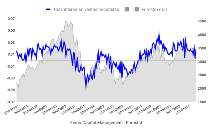 Eurozona: ventas minoristas +1,93% anual hasta octubre El volumen del comercio minorista repuntó tres décimas en octubre con respecto a septiembre y el crecimiento interanual repunta hasta el 1,93%, entre octubre de 2017 y... 5 de diciembre, 2018
