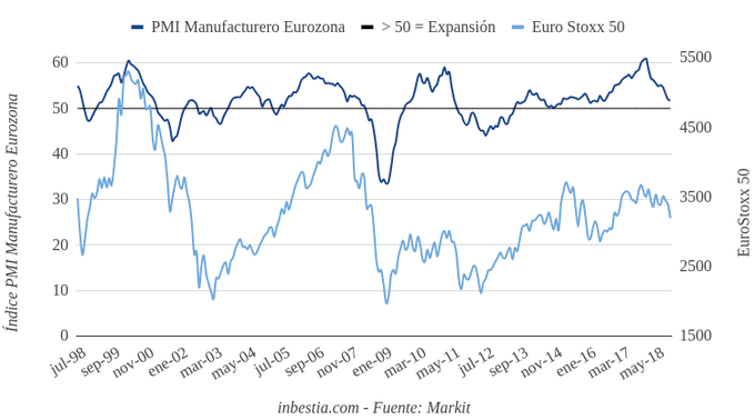 Eurozona: PMI Manufacturero 51,8 en noviembre El indicador de actividad industrial elaborado por Markit Economics para la zona euro ha revisado al alza tres décimas el dato adelantado de noviembre hasta el... 3 de diciembre, 2018