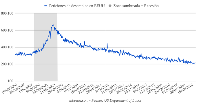 EEUU: Peticiones de paro 214.000 Durante la pasada semana se solicitaron 214.000 nuevos seguros de desempleo en los Estados Unidos, una cifra inferior al dato de anterior de 215.000. El indicador se... 8 de noviembre, 2018