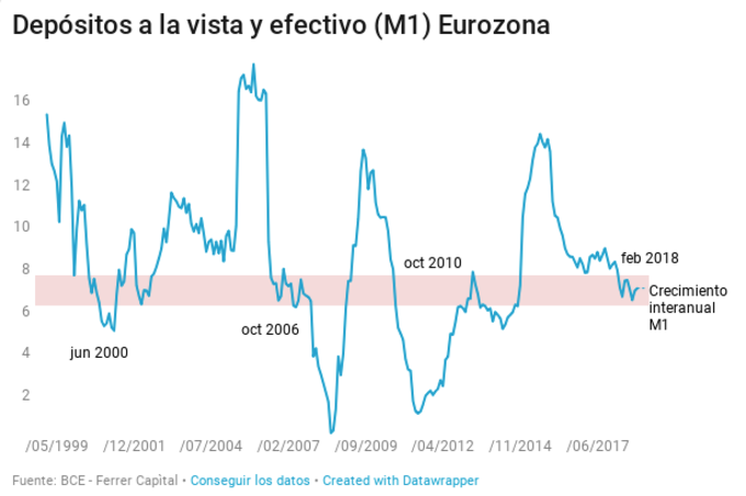 Eurozona: los depósitos crecen el 7,10% anual hasta octubre Los depósitos a la vista y el efecto (M1) en el conjunto de la zona del euro, creció un 7,10% anual hasta el mes de octubre, repuntando por segundo mes consecutivo... 28 de noviembre, 2018