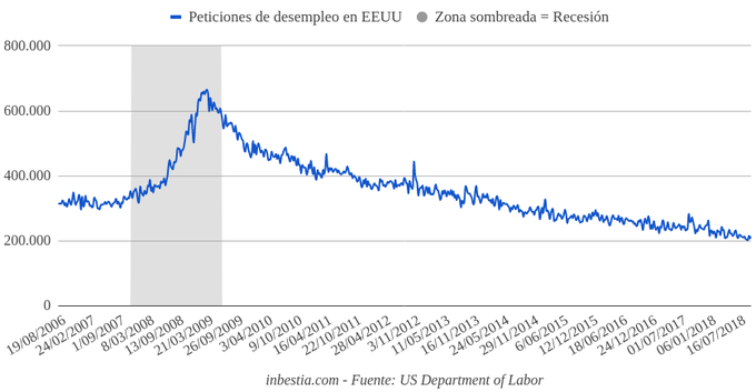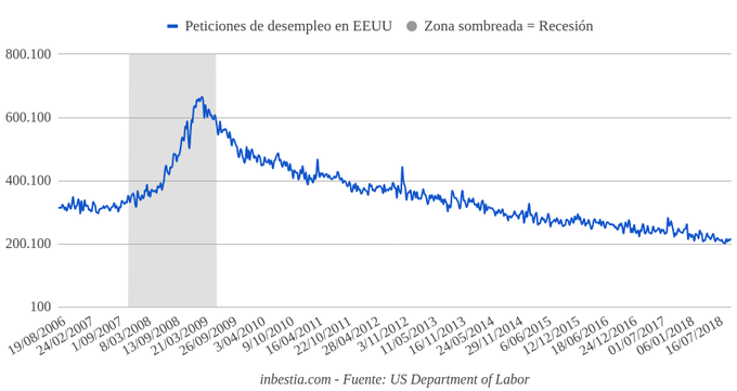 EEUU: Peticiones de paro 214.000 Durante la pasada semana se solicitaron 214.000 nuevos seguros de desempleo en los Estados Unidos, una cifra inferior al dato de anterior de 216.000. El indicador se... 1 de noviembre, 2018