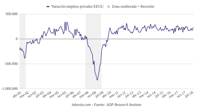 EEUU: +227.000 empleos en el sector privado en octubre La economía norteamericana creó 227.000 empleos en el sector privado durante el mes de octubre, según la entidad privada Automatic Data Processing. Este dato se encuentra... 31 de octubre, 2018
