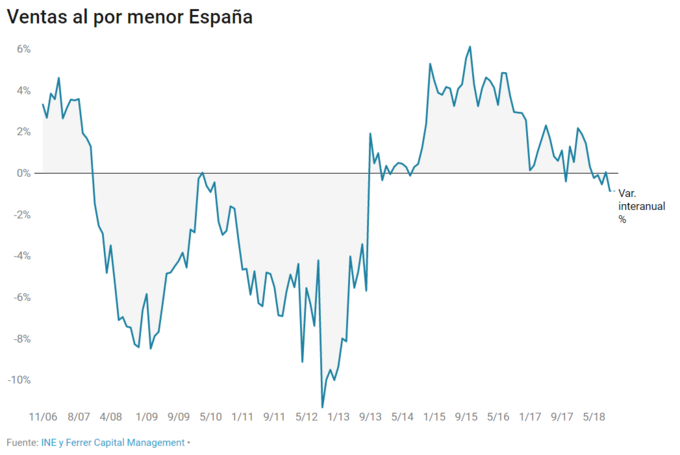 España: el comercio minorista retrocede el -0,86% en el último año, el peor nivel desde 2013 Según datos difundidos esta mañana por el Instituto Nacional de Estadística español, el comercio al por menor descendió 4 décimas en septiembre con respecto a agosto... 30 de octubre, 2018