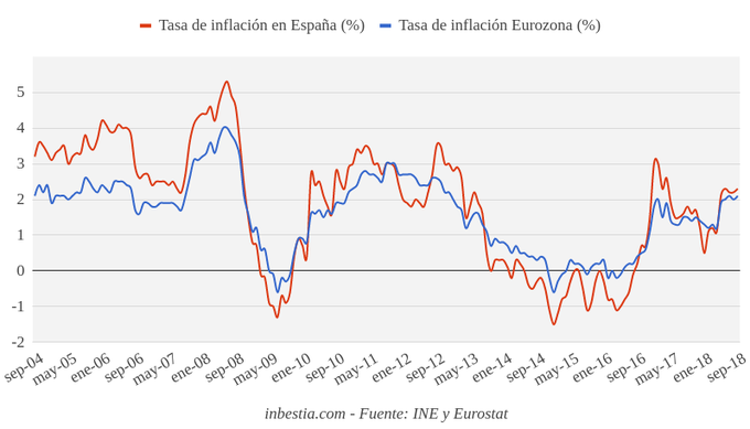 España: Tasa de inflación 2,3% en septiembre El Instituto Nacional de Estadística ha revisado al alza el último dato adelantado de inflación, que se sitúa definitivamente en el 2,3% interanual en septiembre. Tras... 11 de octubre, 2018