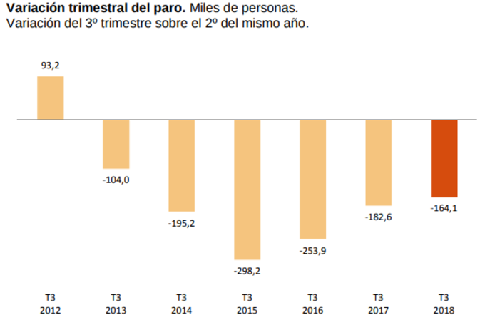 España: Tasa de paro 14,55% en el tercer trimestre de 2018 Según la última Encuesta de Población Activa, la tasa de paro se situó en el 14,55% en el tercer trimestre de 2018, un descenso de 73 puntos porcentuales con respecto al... 25 de octubre, 2018