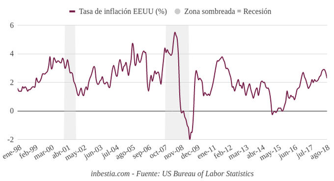 EEUU: Tasa de inflación anual 2,3% en septiembre La tasa de inflación anual en Estados Unidos se sitúa en el 2,3% en septiembre, cuatro décimas inferior al mes anterior. La tasa de inflación anual mide la... 11 de octubre, 2018