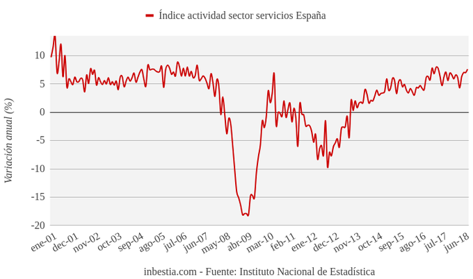 España: Actividad Sector Servicios +7,6% interanual en agosto Según el Instituto Nacional de Estadística, el índice de actividad del sector servicios aumentó un 1,3% en agosto con respecto al mes anterior. Se trata de un dato... 22 de octubre, 2018