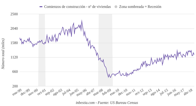 EEUU: Viviendas en comienzo de construcción 1.201.000 en septiembre El número de viviendas que se comenzaron a construir en Estados Unidos se ha estimado en 1.201.000 para los últimos 12 meses, dato corregido a efectos estacionales en... 17 de octubre, 2018