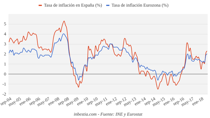 Eurozona: Tasa de inflación 2% en junio Eurostat ha confirmado el dato de inflación adelantado en la zona euro del 2% en junio, una décima superior al dato del mes anterior. La tasa de inflación vuelve a... 18 de julio, 2018