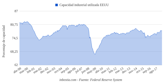 EEUU: Capacidad industrial utilizada 78% en junio Según la Reserva Federal, el porcentaje de capacidad industrial utilizada en junio fue del 78%, una décima por encima del dato del mes anterior y muy superior al dato... 17 de julio, 2018