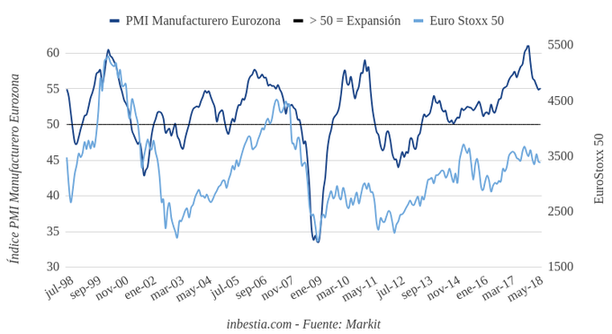 Eurozona: Flash PMI Manufacturero 55,1 en julio Según el dato adelantado de Markit, la actividad industrial en la zona euro se aceleró ligeramente en el último mes, pasando de 54,9 en junio a 55,1 en julio. Es el... 24 de julio, 2018