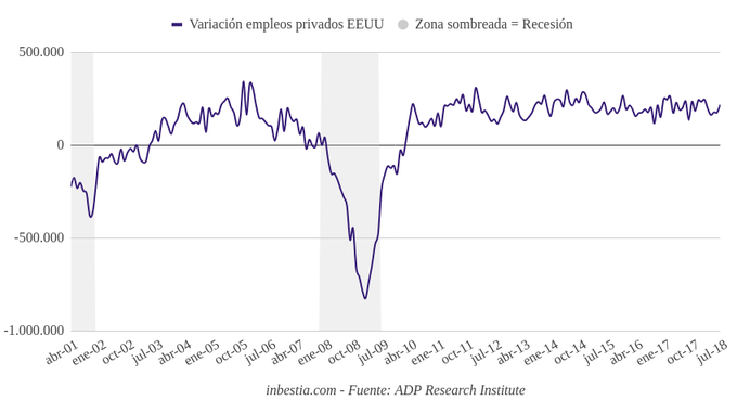EEUU: +219.000 empleos en el sector privado en julio La economía norteamericana creó 219.000 empleos en el sector privado durante el mes de julio, según la entidad privada Automatic Data Processing. Este dato se encuentra... 1 de agosto, 2018