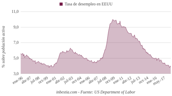 EEUU: Tasa de paro 3,9% en julio Según los datos del Departamento de Trabajo de Estados Unidos, la tasa de paro descendió una décima hasta el 3,9% en julio. El desempleo venía cayendo desde 2009 y la... 3 de agosto, 2018