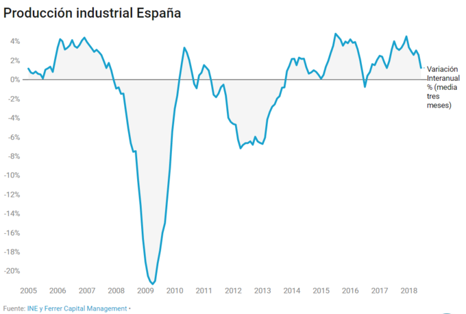España: la producción industrial modera el ritmo de crecimiento anual Según informa esta mañana el Instituto Nacional de Estadística español, la producción industrial se contrajo un 0,6% en junio con respecto a mayo de este año y el... 8 de agosto, 2018