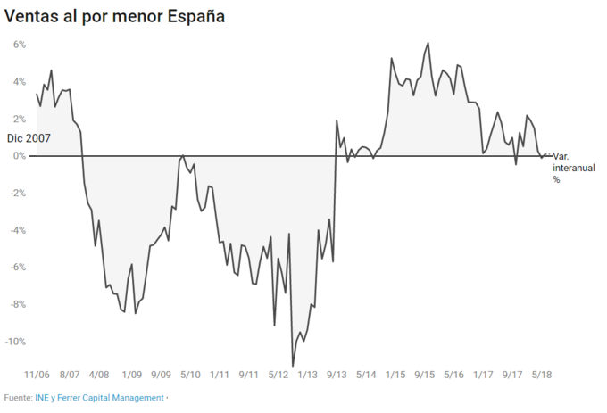 España: las ventas al por menor siguen estancadas Las ventas minoristas españolas, que reflejan la evolución del consumo en este país, siguen estancadas. Si el crecimiento anual del pasado mes fue de un -0,11%, este mes... 27 de julio, 2018