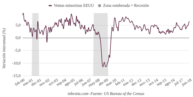 EEUU: Ventas minoristas +6,6% interanual en junio Según el Instituto Nacional de Estadística estadounidense (US Bureau Census), las ventas minoristas aumentaron un 0,5% en junio respecto al mes anterior. En cuanto a su... 16 de julio, 2018