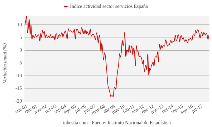 España: Actividad Sector Servicios 6,1% interanual en mayo Según el Instituto Nacional de Estadística, el índice de actividad del sector servicios aumentó un 1,5% en mayo con respecto al mes anterior. Se trata de un dato... 16 de julio, 2018