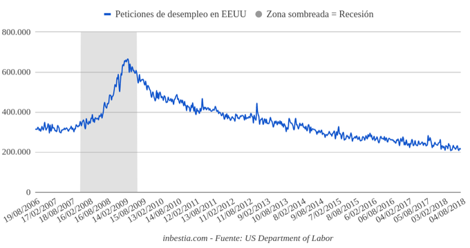 EEUU: Peticiones de paro 217.000 Durante la pasada semana se solicitaron 217.000 nuevos seguros de desempleo en los Estados Unidos, una cifra superior al dato de anterior revisado de 208.000. Los últimos... 26 de julio, 2018