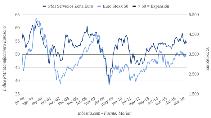 Eurozona: Índice Servicios PMI 54,2 en julio El dato adelantado de julio del Índice de Servicios PMI ha sido revisado dos décimas a la baja hasta 54,2. El dato del mes anterior se ha confirmado en el nivel de... 3 de agosto, 2018