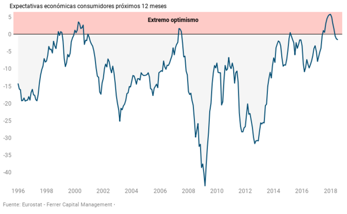 Eurozona: la confianza de los consumidores baja en julio Según informa hoy Eurostat, la agencia estadistica de la Unión Europea, la confianza de los consumidores de la eurozona declinó este mes de julio hasta los -1,5 puntos... 30 de julio, 2018