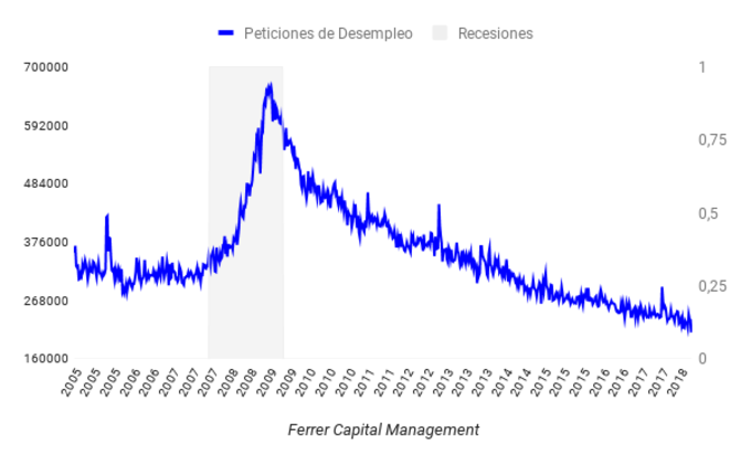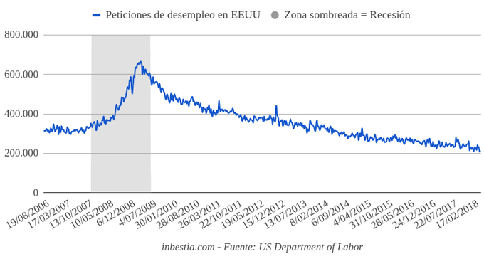 EEUU: 209.000 peticiones de paro la pasada semana El número de nuevas solicitudes de las subvenciones por desempleo en los EEUU, declinó hasta un nuevo mínimo cíclico de 209.000, una cifra propia de una fase de... 26 de abril, 2018