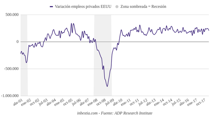 EEUU: +204.000 empleos en el sector privado en abril La economía norteamericana creó 204.000 empleos en el sector privado durante el mes de abril, según la entidad privada Automatic Data Processing. Este dato se encuentra... 2 de mayo, 2018