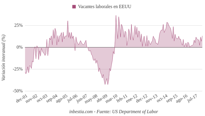EEUU: 6.550.000 vacantes laborales en marzo Según del Departamento de Trabajo de Estados Unidos, el número total de vacantes laborales o puestos de trabajo sin cubrir ascendió hasta los 6,55 millones en marzo. Se... 8 de mayo, 2018