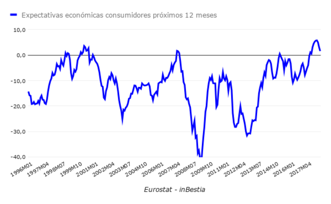 La confianza de los consumidores europeos se mantiene en altos niveles El índice de expectativas de los consumidores a 12 meses vista de la Eurozona se mantiene en abril en altos niveles, el registrar 1,6 puntos. Aunque este nivel es el más... 27 de abril, 2018