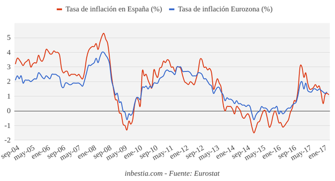 Eurozona: Tasa de inflación 1,2% en abril Eurostat ha revisado el dato de inflación adelantado en la zona euro del 1,2% en abril, una décima inferior al dato del mes anterior. La tasa de inflación se frena... 16 de mayo, 2018