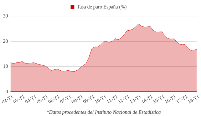 España: Tasa de paro 16,74% en el primer trimestre de 2018 Según la última Encuesta de Población Activa, la tasa de paro se situó en el 16,74% en el primer trimestre de 2018, un aumento de 0,20 puntos porcentuales con respecto... 26 de abril, 2018
