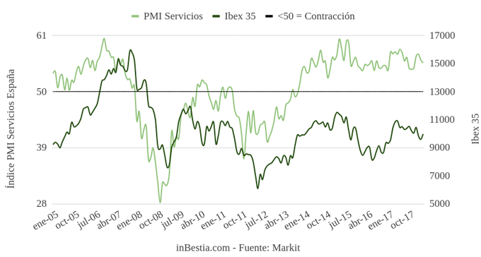 España: Índice Servicios PMI 55,6 en abril Según Markit, el ritmo de crecimiento de la actividad del sector servicios descenció en España en el último mes, pasando de un nivel en el Índice PMI Servicios de 56,2... 4 de mayo, 2018
