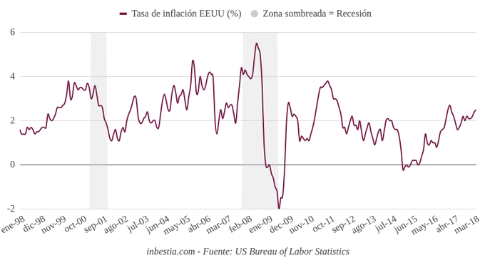 EEUU: Tasa de inflación anual 2,5% en abril La tasa de inflación anual en Estados Unidos se sitúa en el 2,5% en abril, una décima superior al mes anterior. La tasa de inflación anual mide la variación porcentual... 10 de mayo, 2018