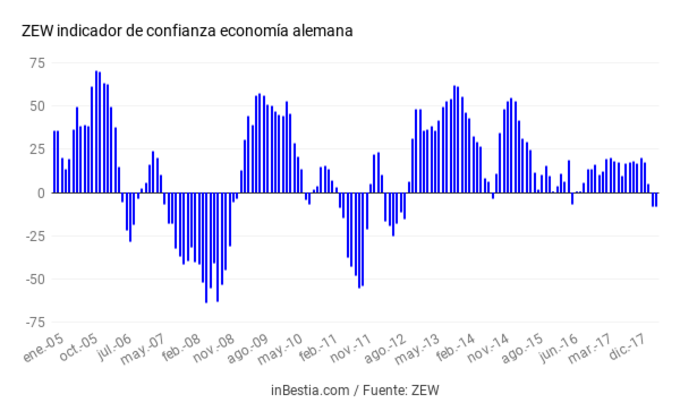 Alemania: indice de confianza ZEW -8,2 en mayo El índice de confianza económica a seis meses vista (ZEW), una encuesta realizada entre 350 expertos financieros, registra una lectura negativa por segundo mes consecutivo... 15 de mayo, 2018