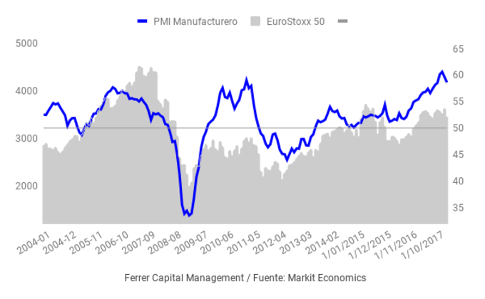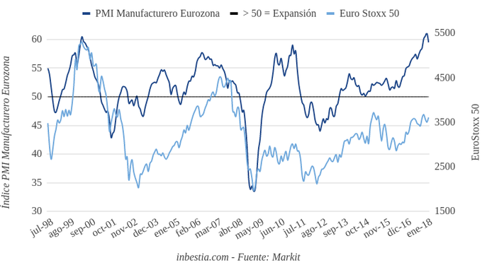 Eurozona: PMI Manufacturero 58,6 en febrero El índice de difusión PMI Manufacturero, que trata de medir la evolución del sector industrial de la zona euro, declinó un punto en febrero hasta los 58,6. Esta lectura... 1 de marzo, 2018