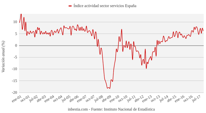 España: Actividad Sector Servicios +6,2% interanual en diciembre Según el Instituto Nacional de Estadística, el índice de actividad del sector servicios descendió un 0,1% en diciembre con respecto al mes anterior. Se trata de un dato... 21 de febrero, 2018