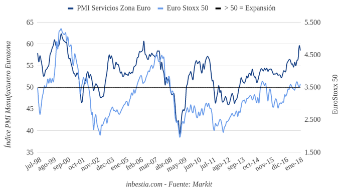 Eurozona: PMI Servicios baja hasta los 56,2 puntos en febrero El índice de difusión PMI Servicios que trata de reflejar la evolución de este importante sector de la economía de la Eurozona, descendió en febrero hasta los 56,2... 5 de marzo, 2018