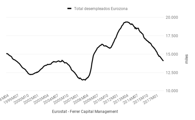 Eurozona: el paro cae en 10.000 personas Según informa hoy Eurostat, la agencia estadística de la Unión Europea, el número de parados en el conjunto de la zona euro declinó ligeramente en 10.000 personas en... 1 de marzo, 2018