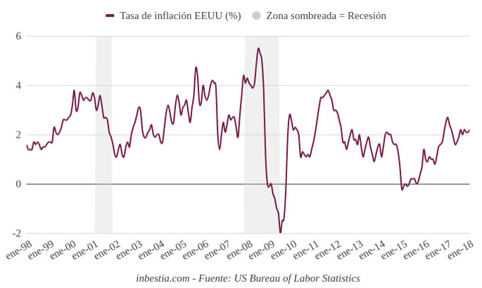 EEUU: Tasa de inflación anual 2,2% en febrero La tasa de inflación anual en Estados Unidos se sitúa en el 2,2% en febrero, una décima superior al mes anterior. La tasa de inflación anual mide la variación... 13 de marzo, 2018