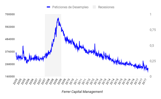 EEUU: 210.000 peticiones de paro El número de nuevas solicitudes de prestaciones por desempleo, declinó hasta las 210.000 durante la pasada semana, marcando un nuevo mínimo en el actual ciclo expansivo... 1 de marzo, 2018