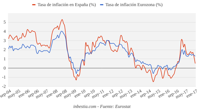 Eurozona: Tasa de inflación 1,3% en enero Eurostat ha confirmado el dato de inflación adelantado en la zona euro del 1,3% en enero, una décima inferior al dato del mes anterior. La tasa de inflación se frena tras... 23 de febrero, 2018