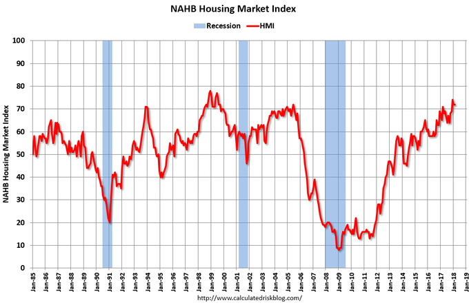 EEUU: índice NAHB constructores 72 puntos en febrero El indice de confianza de los constructores estadounidenses se mantuvo en 72 puntos este mes, al igual que en enero. Una lectura por encima de 50 señala que más... 15 de febrero, 2018