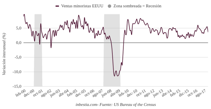 EEUU: Ventas minoristas +4% interanual en febrero Según el Instituto Nacional de Estadística estadounidense (US Bureau Census), las ventas minoristas descendieron un 0,1% en febrero respecto al mes anterior. En cuanto a... 14 de marzo, 2018