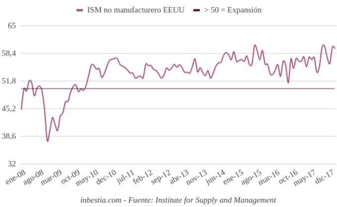 EEUU: Índice ISM no manufacturero 59,5 en febrero El índice elaborado por Institute for Supply Management (ISM) para el sector no manufacturero alcanzó en ferero el nivel de 59,5, un dato ligeramente inferior al del mes... 5 de marzo, 2018