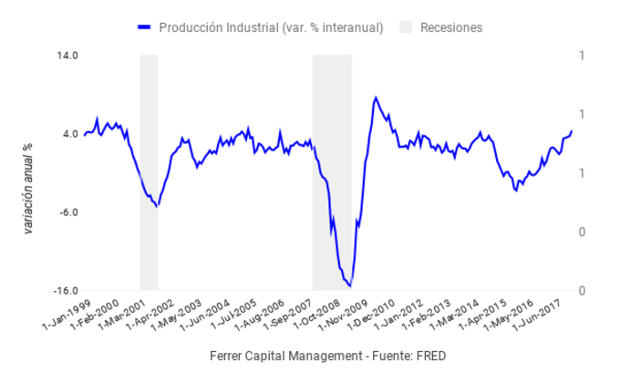 EEUU: producción industrial +4,4% anual en febrero El índice de producción industrial de EEUU repuntó en febrero un 1% con respecto a enero. El crecimiento interanual se eleva hasta el 4,4%, la cifra más elevada desde... 16 de marzo, 2018