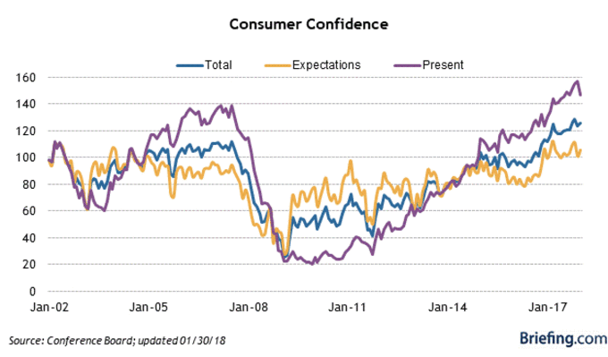 EEUU: Confianza del Consumidor 125,4 La confianza de los consumidores estadounidenses repuntó este mes de enero hasta los 125,4, según el índice que elaborad The Conference Board. Esta lectura, mayor que la... 30 de enero, 2018