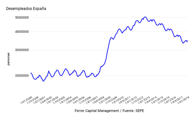 El paro crece en 63.747 personas en enero El número de personas inscritas en las listas de desempleo del SEPE español, repuntaron en enero en 63.747, hasta un total de 3.476.528. 2 de febrero, 2018