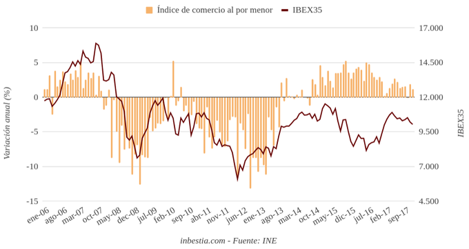España: Índice de comercio al por menor +1,2% interanual en diciembre Según los datos procedentes del Instituto Nacional de Estadística, el volumen del comercio al por menor en España aumentó un 1,2% interanual en diciembre con respecto al... 29 de enero, 2018