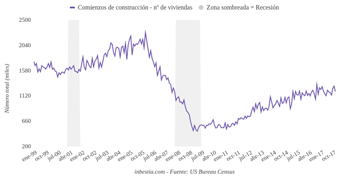 EEUU: Viviendas en comienzo de construcción 1.192.000 en diciembre El número de viviendas que se comenzaron a construir en Estados Unidos se ha estimado en 1.192.000 para los últimos 12 meses, dato corregido a efectos estacionales en... 18 de enero, 2018